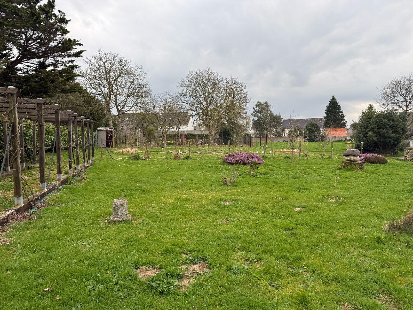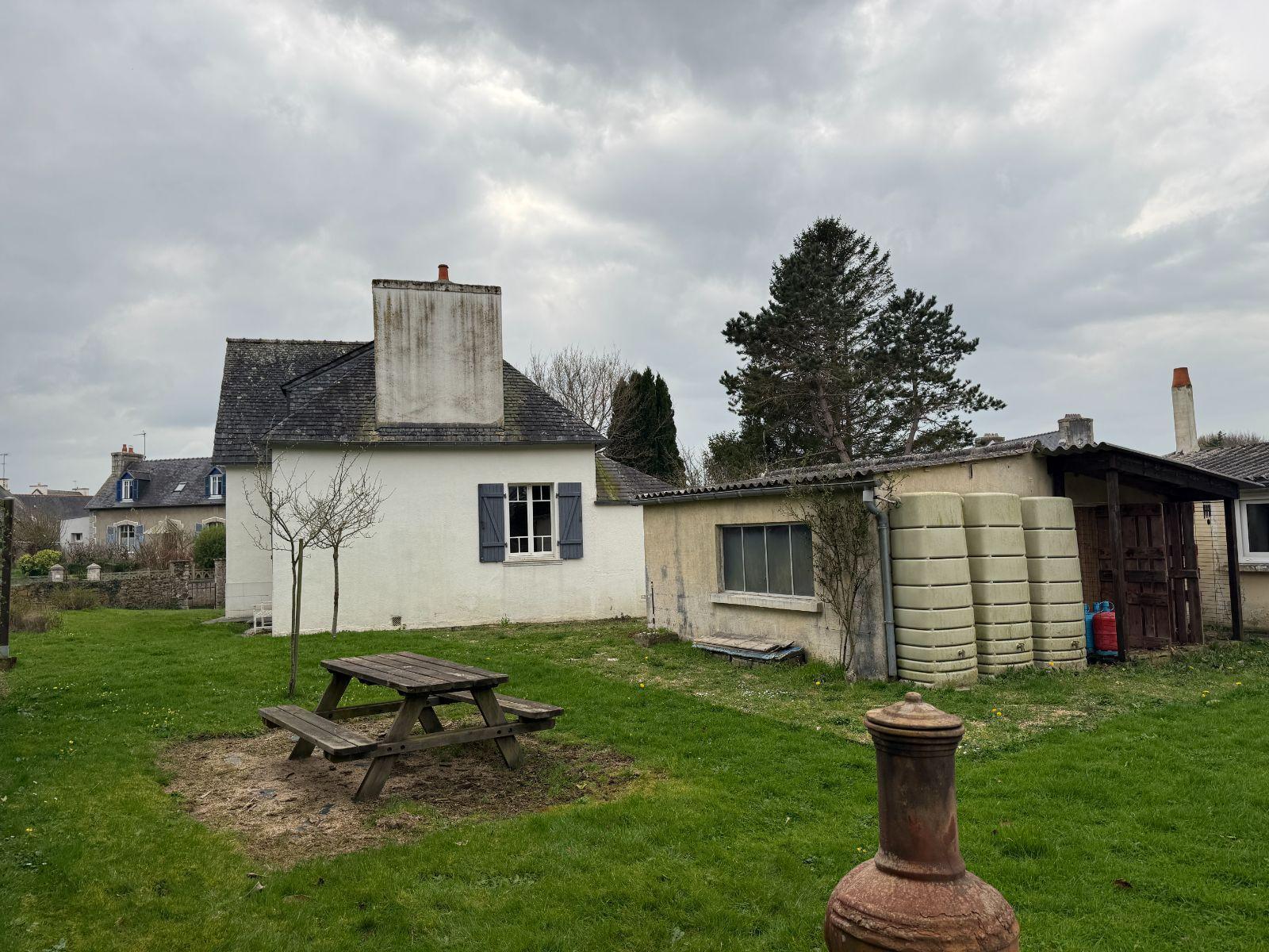 A VENDRE, GUIMAEC Au centre de la commune, sur une très belle parcelle de plus de 2000 m², Découvrez cette jolie maison au style architectural séduisant avec dépendances. Une rénovation totale est à prévoir : sols, électricité, plomberie, isolation,... Vous disposerez de plain pied d'un espace cuisine, salon - salle à manger, salle de bains et un WC. L'étage dispose de 2 chambres. Un demi sous-sol complète l'espace habitable. Une première dépendance est semi aménagée, 2 autres permettent le rangement / stockage.
